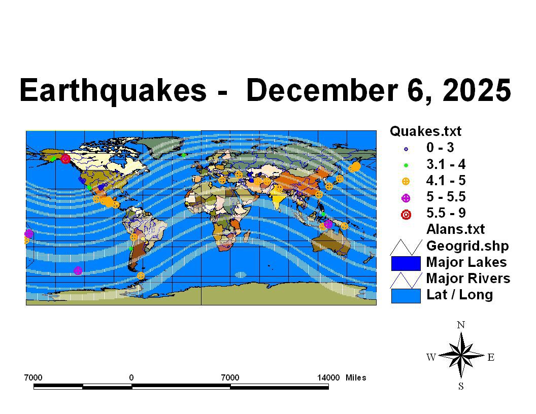 Vanuatu to Peru, Western Texas, Missouri, Kyrgyzstan, Scotia Sea, Central Chile, Arctic Ocean, Pakistan, Xinjiang, China, Oaxaca, Chiapas, Mexico, Guatemala, Tajikistan, South of Africa, South Sandwich Islands, Uzbekistan, Pakistan, Mexico, Oklahoma, Hindu Kush,
